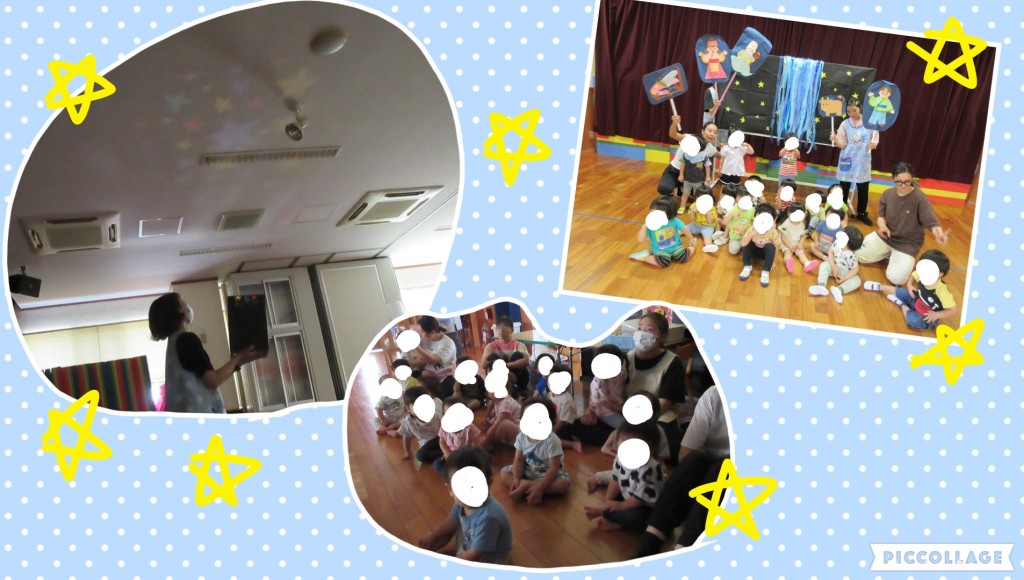 みんなで七夕のお話についてのペープサートを見たり、クイズに答えたり、
