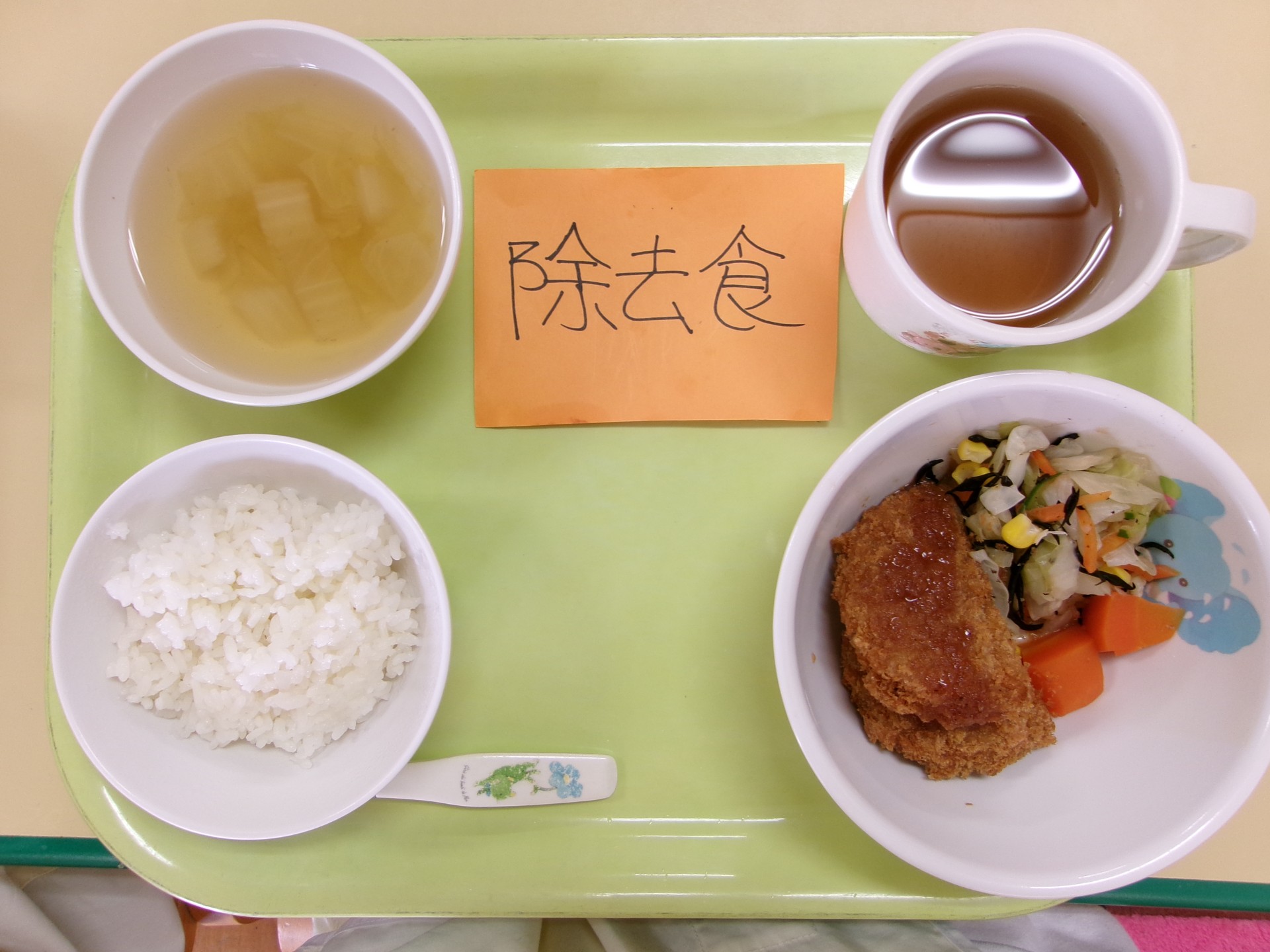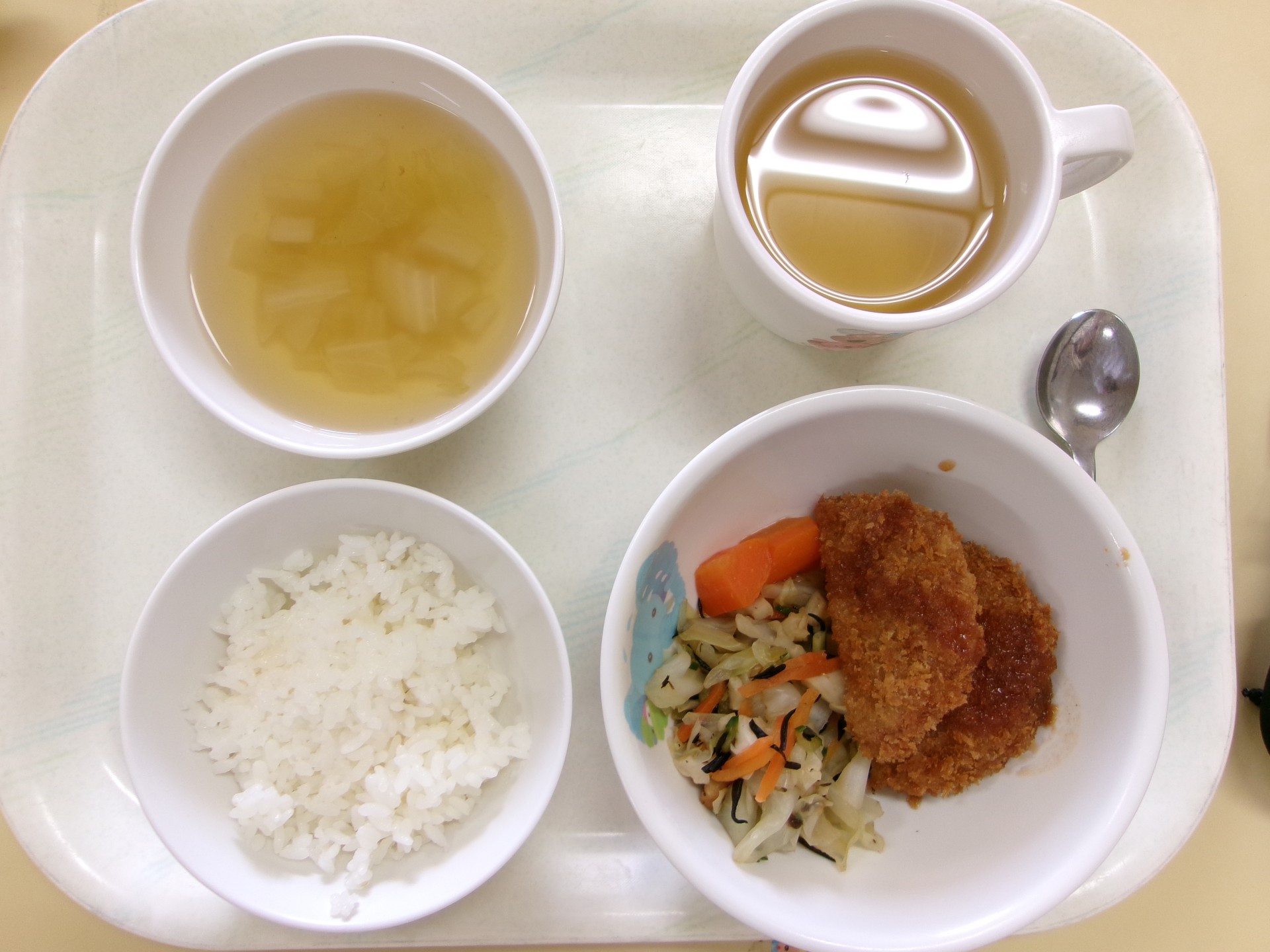 今日の給食をお知らせします。 〇ご飯 〇ミンチカツ 〇ひじきサラダ 〇コンソメスープ(白菜)
