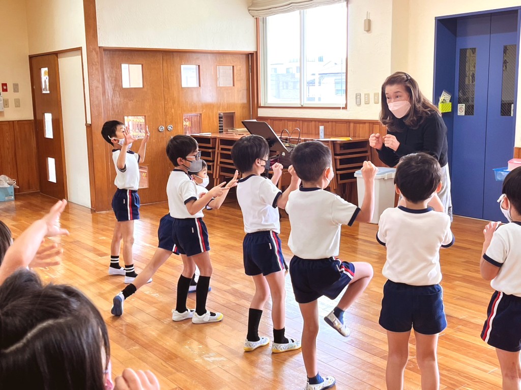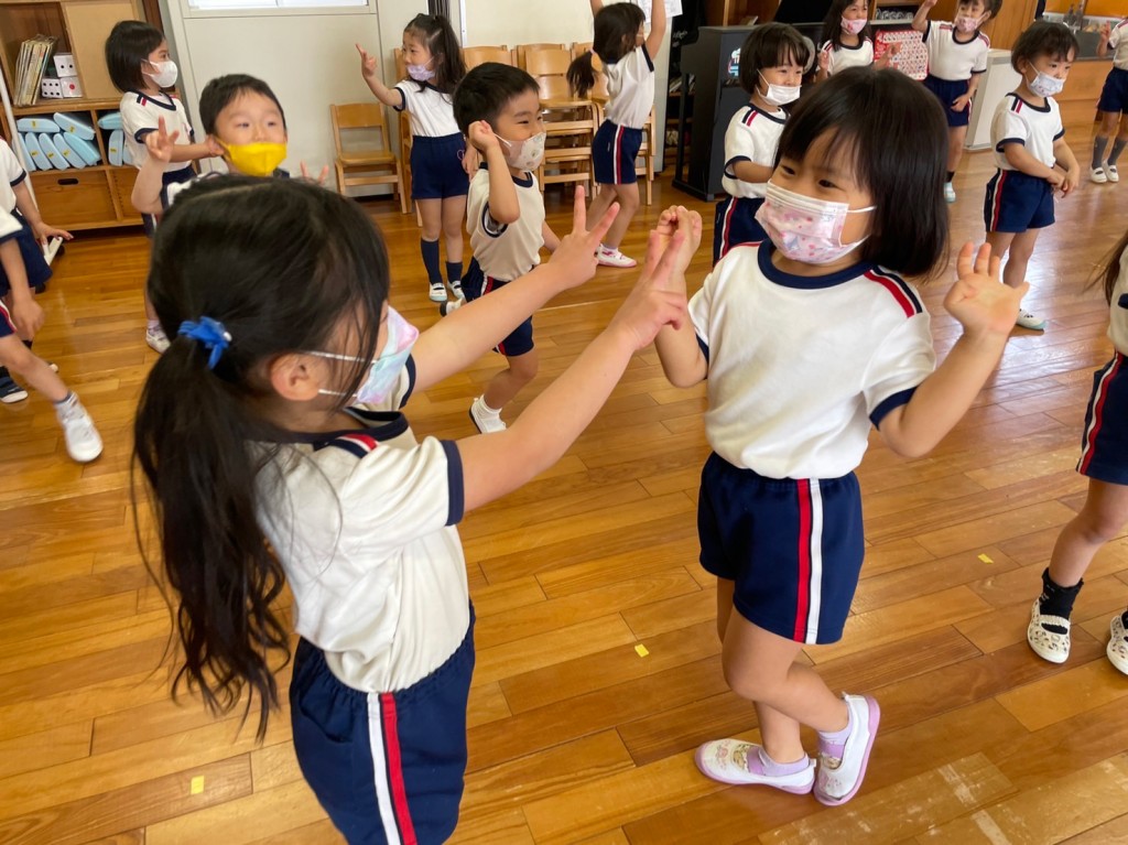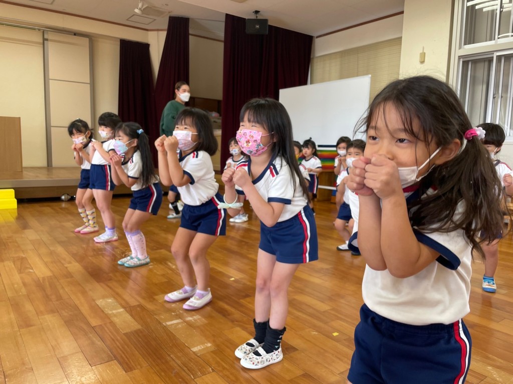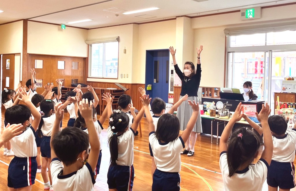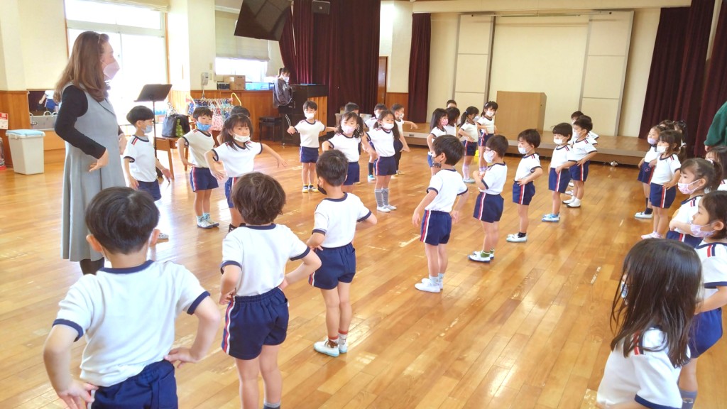 紀之定先生と一緒に元気な声で歌いながら、楽しく取り組んでいます。