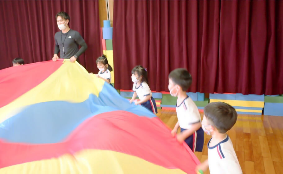 ドリームこども園とドリームこども園分園の2園合同で行う運動会では、様々な運動を取り入れたサーキット運動やパラバルーン、リレーを披露しています。