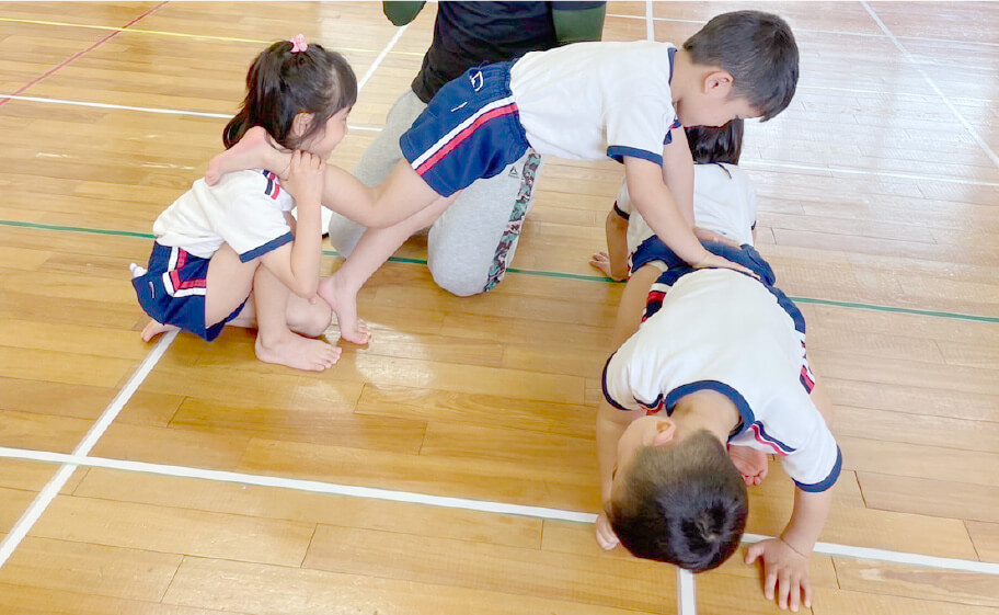 鉄棒やマット、跳び箱など、さまざまな運動を通して基礎体力づくりに取り組みます。